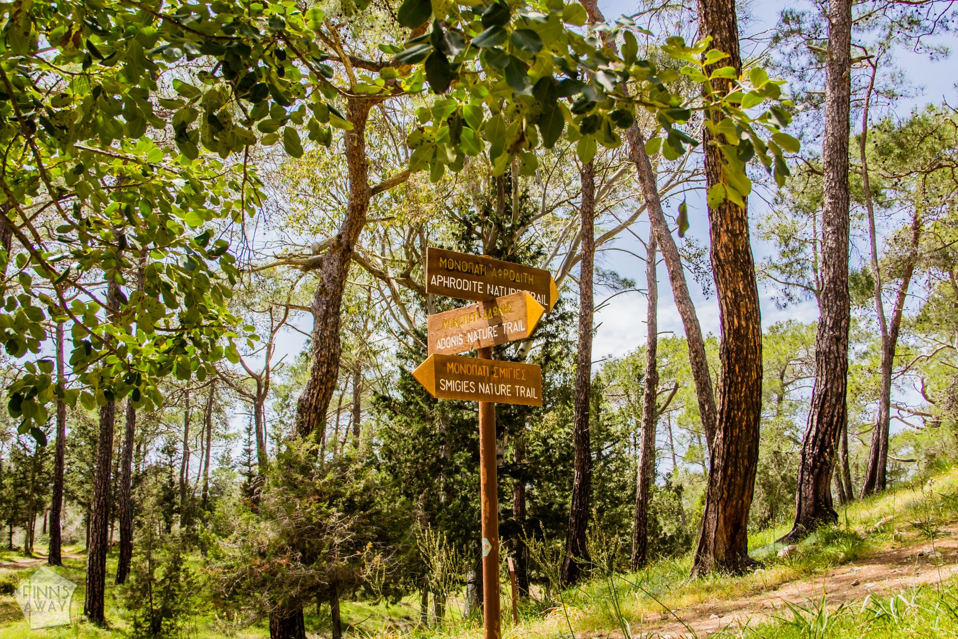The trails that begin near the Baths of Aphrodite are called Aphrodite Trail and Adonis Trail. These two can be combined into a roughly 11 km hike that takes you up on the hills, providing excellent views over the peninsula. Trails also cross with yet another circular trail called Smigies Trail, so you could easily add another 5 km to the hike. Adonis and Aphrodite trails lead to several points of interest, and to beautiful landscapes above the coastline.